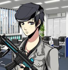 作業服っぽいものを着せたかったんだけど、つなぎが、F1の服みたいのしか無いからトレンチコートを買ったんだけど、沼田玩具っぽい帽子もなく、ハンチングかぶせたけどイマイチだなって思っていたところ……、ガチャでたまたま銃が出て……。